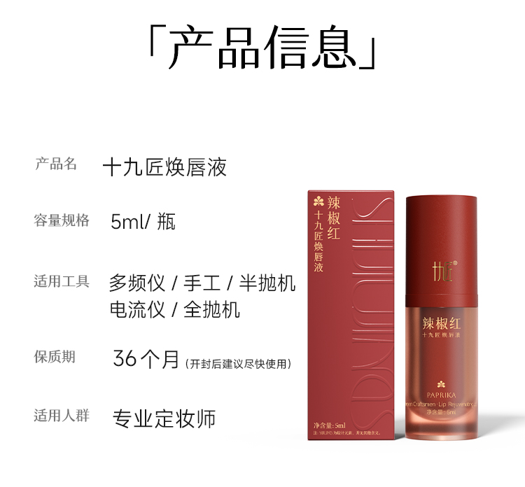 十九匠半永久纹唇墨水植物成分安全纹绣色料高端专用唇部色料自然持久唇色